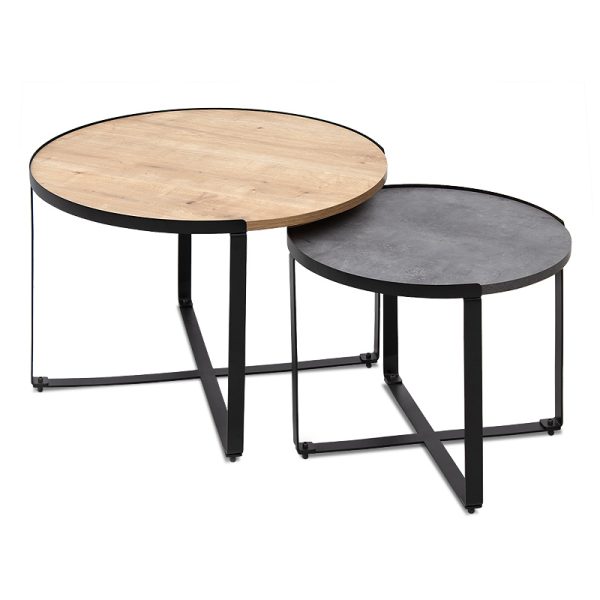 Σετ τραπεζάκια σαλονιού Davis Megapap 2τμχ. χρώμα φυσικό οξιάς/γκρι σκυροδέματος 70x69x46εκ.