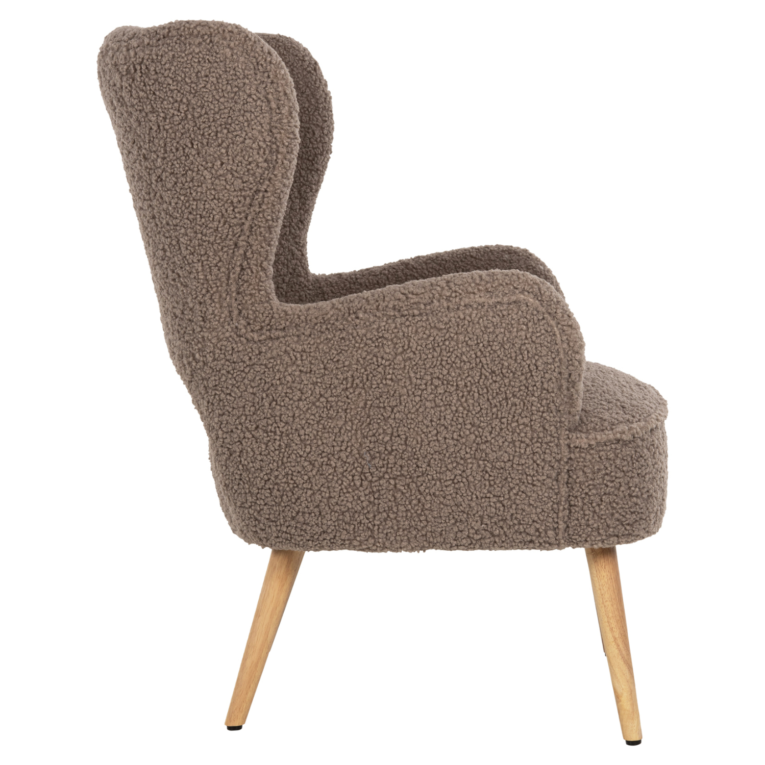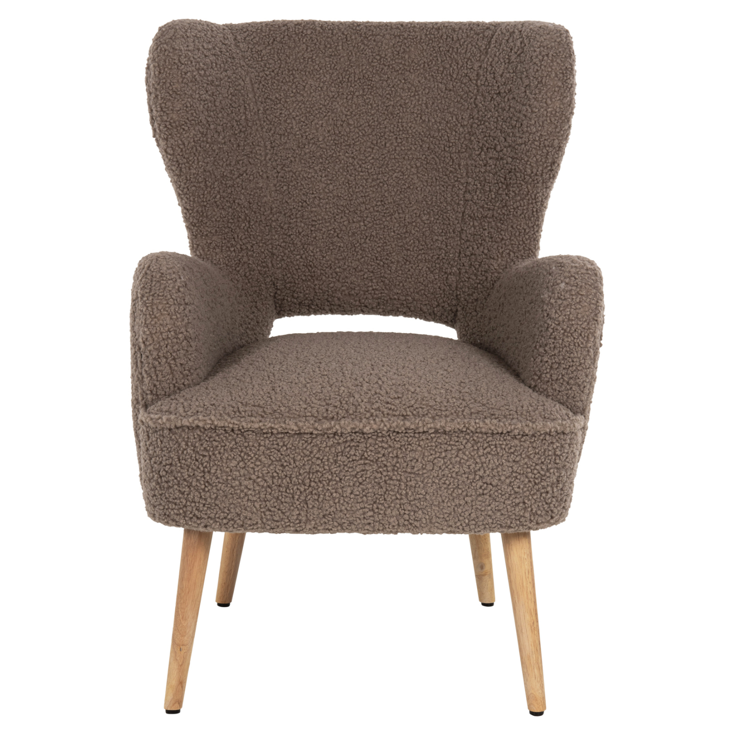 Σας παρουσιάζουμε την πολυθρόνα-μπερζέρα MYLIE, σε απαλό ανοιχτό ΚΑΦΕ χρώμα με πόδια σε φυσικό χρώμα ξύλου δημιουργώντας μια όμορφη διχρωμία. Η ψηλή πλάτη με το άνοιγμα χαμηλά πίσω, και η σχεδόν “bucket” σχεδίαση, προσδίδουν ιδιαίτερη ομορφιά στην πολυθρόνα σε συνδυασμό, φυσικά, με το υψηλής ποιότητας μπουκλέ ύφασμα. Το κάθισμα είναι αναπαυτικό ανταποκρινόμενο στον χαρακτήρα της πολυθρόνας, ενώ το χαρακτηριστικό αυτής της πολυθρόνας είναι οι έντονες καμπύλες της τόσο ψηλά στην πλάτη όσο και στα μπράτσα. Είναι μοντέρνα συνδυάζοντας στιλ και άνεση και μπορείτε να την τοποθετήσετε δίπλα στο τζάκι, σε ένα παράθυρο ή ακόμα και στο υπνοδωμάτιό σας, και να αφεθείτε στην «αγκαλιά» της.