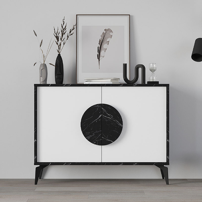 Μπουφές μελαμίνης Gora Megapap χρώμα μαύρο εφέ μαρμάρου – λευκό 110×35,6×82εκ.