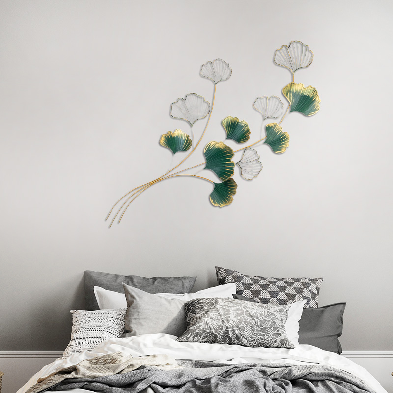 Διακοσμητικό τοίχου Flower Megapap μεταλλικό χρώμα χρυσό – πράσινο 120×1,55×100εκ.