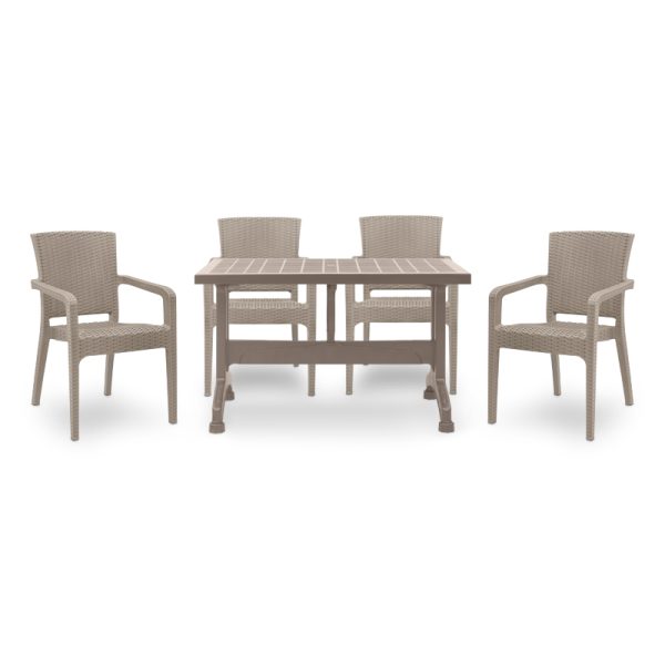 Σετ τραπεζαρία κήπου Callan Megapap 5τμχ πολυπροπυλενίου τραπέζι 120×70 – πολυθρόνα recycled χρώμα cappuccino S_GP046-0002,2+GP046-0001,3×4