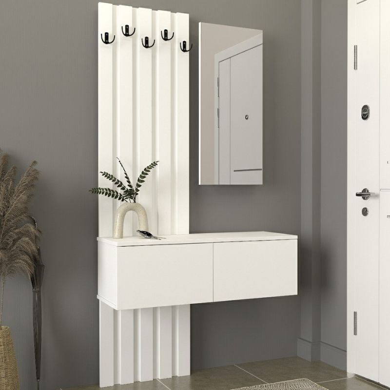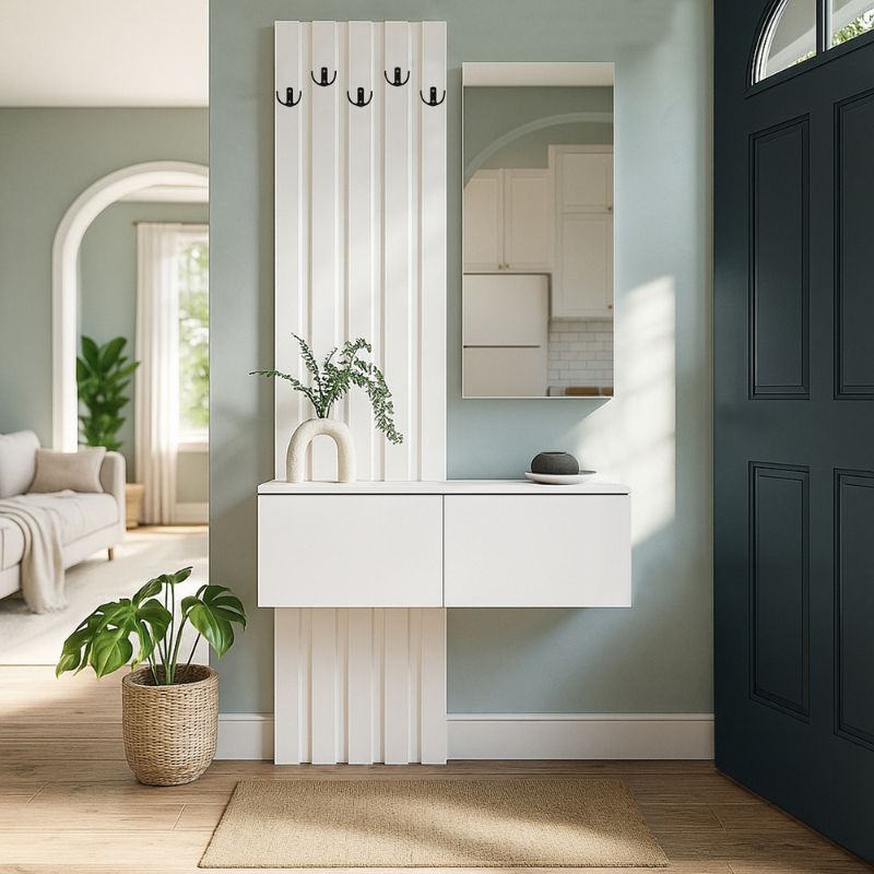 - Ένα πολυλειτουργικό έπιπλο που συνδυάζει καθρέφτη, κρεμάστρα και αποθηκευτικό χώρο, εξοικονομώντας χώρο και προσφέροντας πρακτικότητα στην καθημερινότητα.