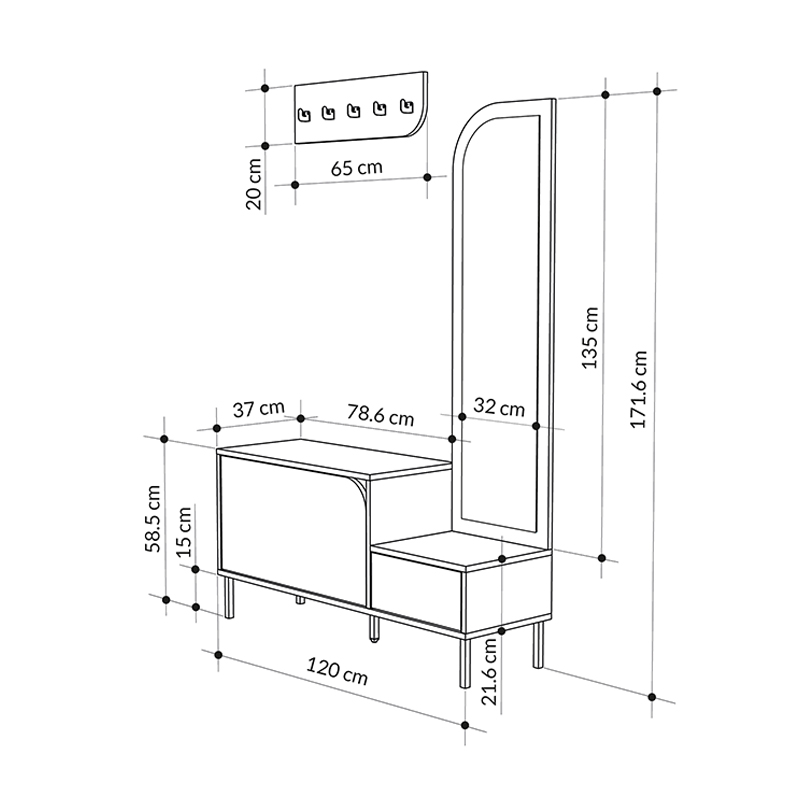 - Διαστάσεις: Μήκος 120 x Βάθος 37 x Ύψος 171,6 εκ.
