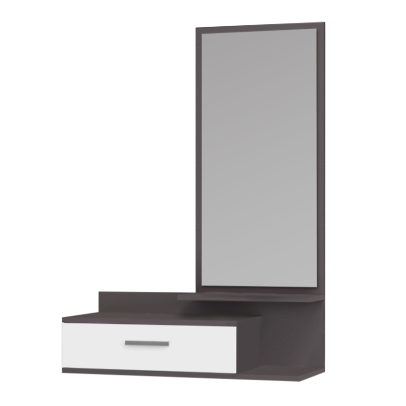 • Φέρει δύο ράφια, ένα συρτάρι και καθρέφτη.