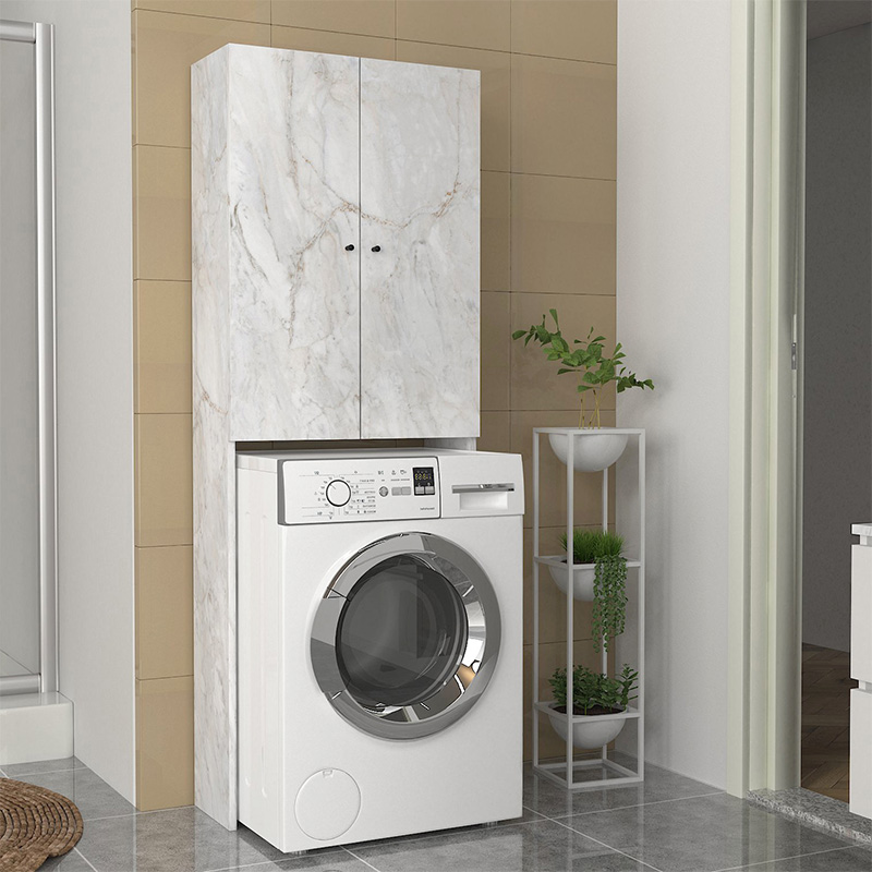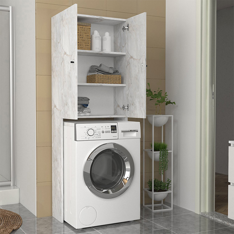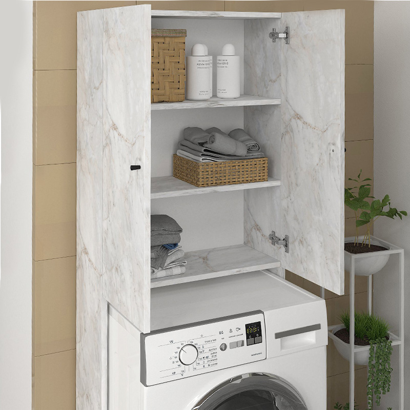 Έπιπλο πλυντηρίου Romme Megapap χρώμα λευκό εφέ μαρμάρου 65×27,1×180εκ.