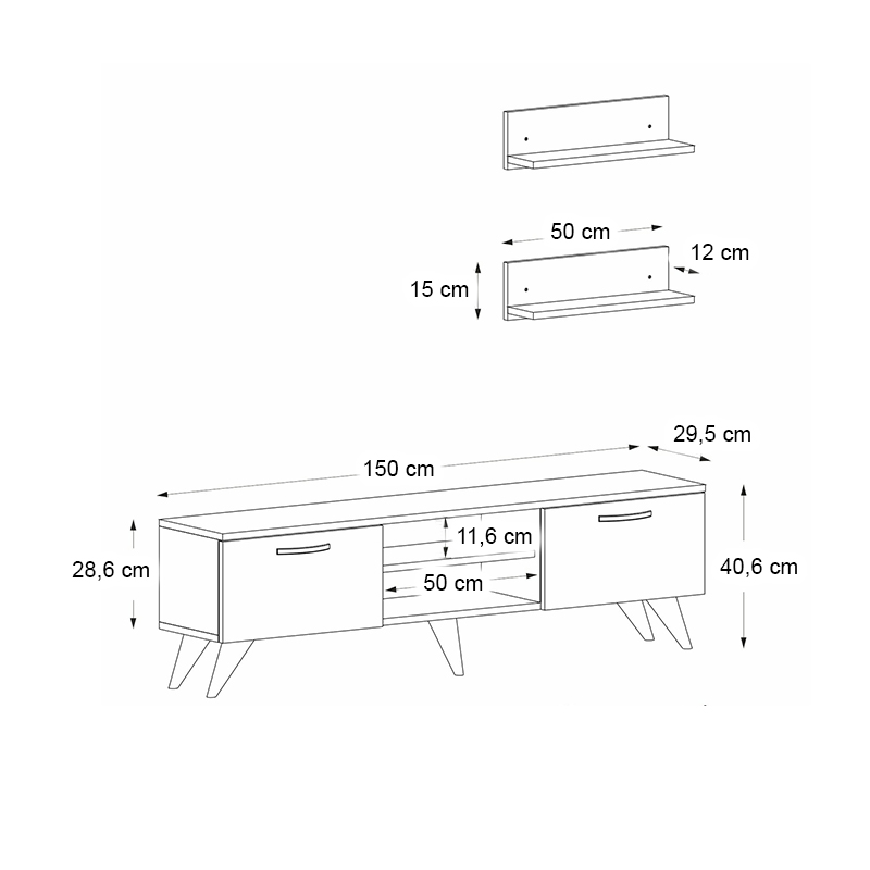 - Διαστάσεις: Μήκος 150 x Βάθος 29,5 x Ύψος 40,6 εκ.