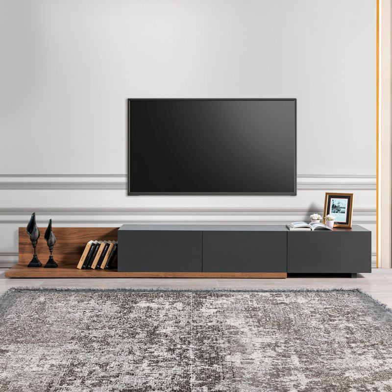 Έπιπλο τηλεόρασης Enstey Megapap επεκτεινόμενο χρώμα καρυδί – ανθρακί 260×41,8×33,5εκ.