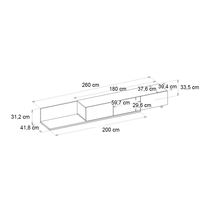 • Διαστάσεις: Μήκος 260 x Βάθος 41,8 x Ύψος 33,5 εκ.