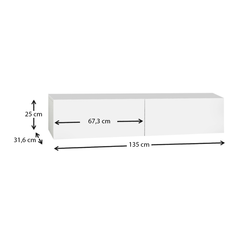 Έπιπλο τηλεόρασης επιτοίχιο Aristo Megapap από μελαμίνη με LED χρώμα λευκό 135×31,6×25εκ.