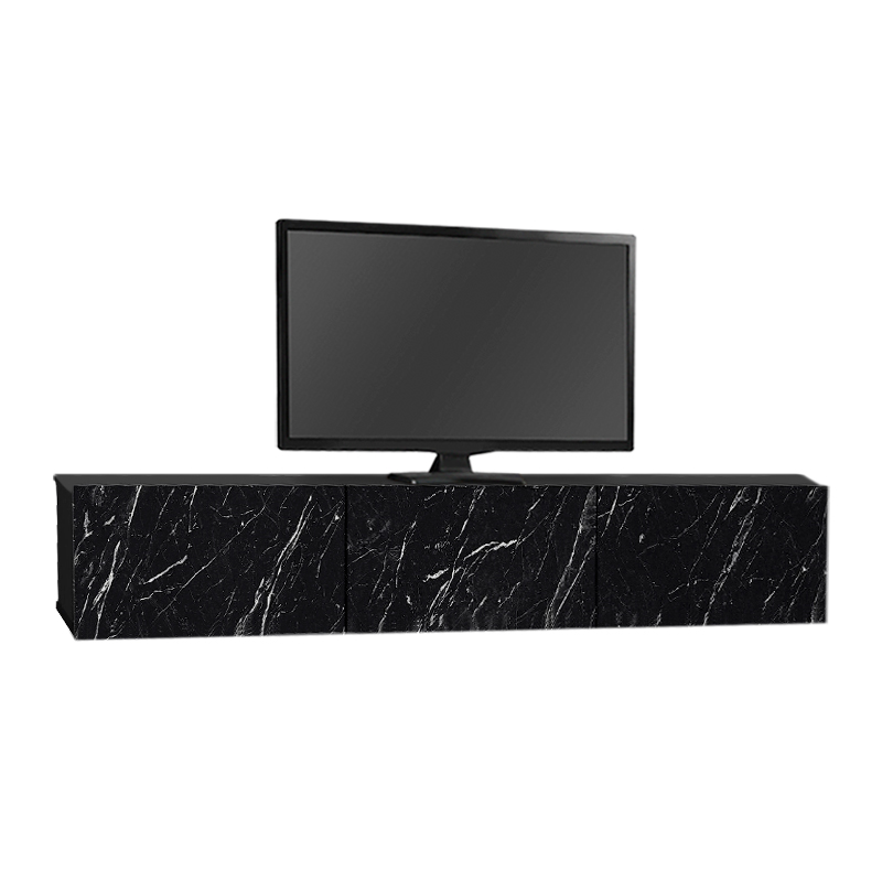 Έπιπλο τηλεόρασης επιτοίχιο Damla Megapap από μελαμίνη με LED χρώμα μαύρο εφέ μαρμάρου 180×29,5×29,5εκ.
