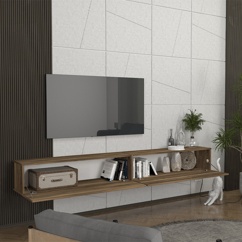 Το επιτοίχιο έπιπλο τηλεόρασης Espanse συνδυάζει κομψότητα και minimal αισθητική, δημιουργώντας ένα εντυπωσιακό κεντρικό σημείο στο σαλόνι σας. Οι καθαρές γραμμές του χαρίζουν διαχρονικό στυλ, ενώ η επιτοίχια τοποθέτηση προσφέρει αίσθηση ελευθερίας και χώρου. Με πρακτικούς αποθηκευτικούς χώρους, είναι ιδανικό για να διατηρείτε τον χώρο σας οργανωμένο, ενώ αναβαθμίζει άμεσα την ατμόσφαιρα του καθιστικού.