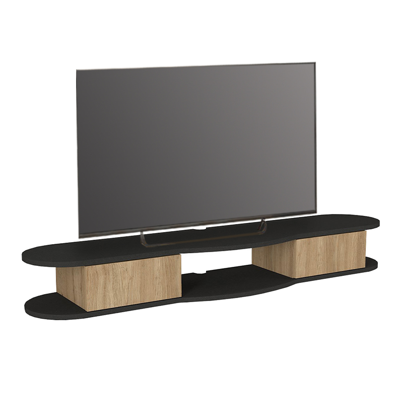 Έπιπλο τηλεόρασης επιτοίχιο Perk Megapap με LED χρώμα ανθρακί – sepet oak 150x35x19,2εκ.