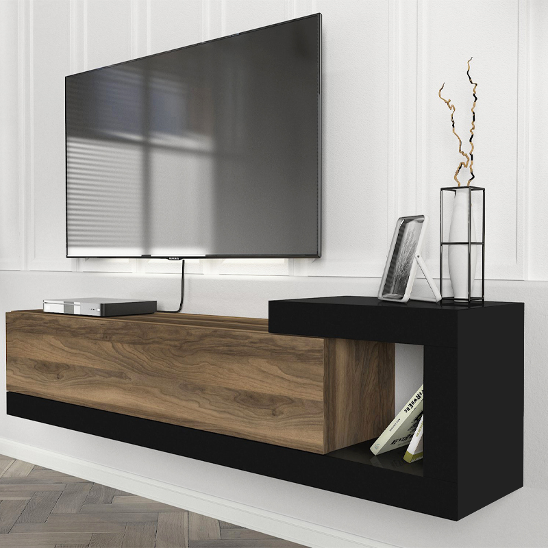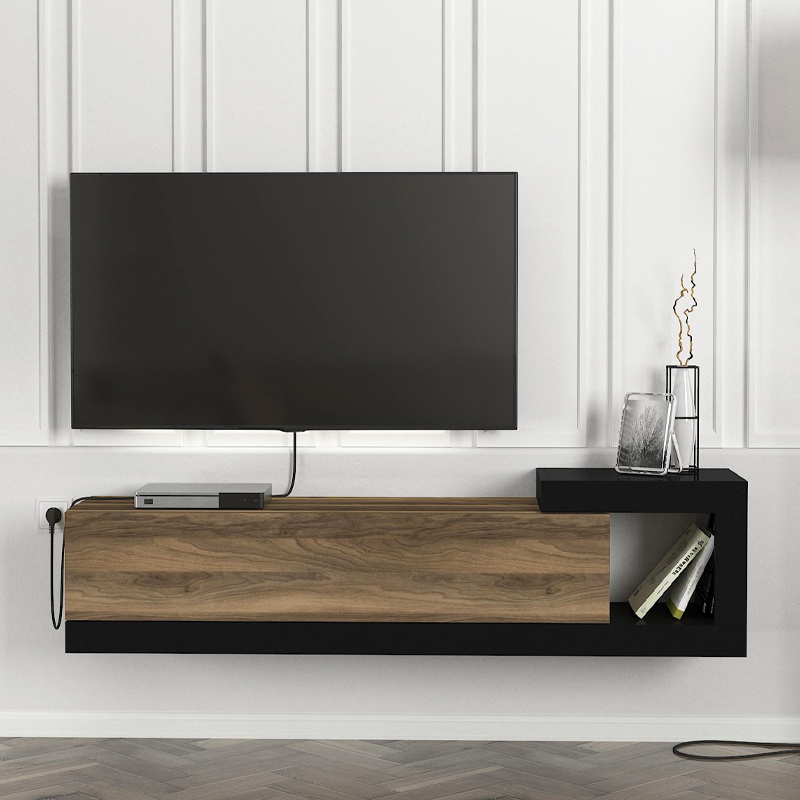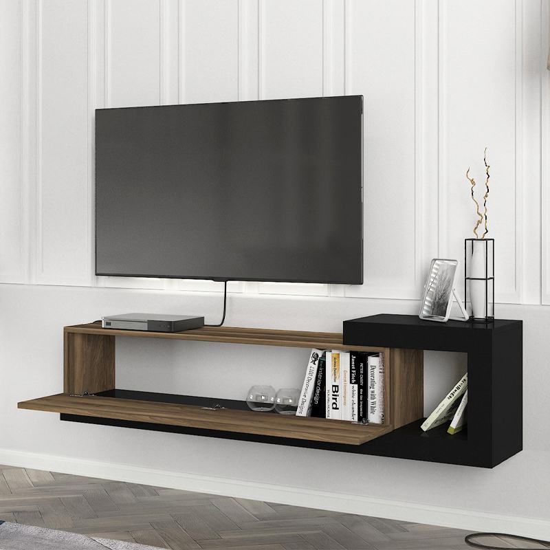 Έπιπλο τηλεόρασης επιτοίχιο Volare Megapap χρώμα καρυδί – μαύρο 150×29,6×38,6εκ.