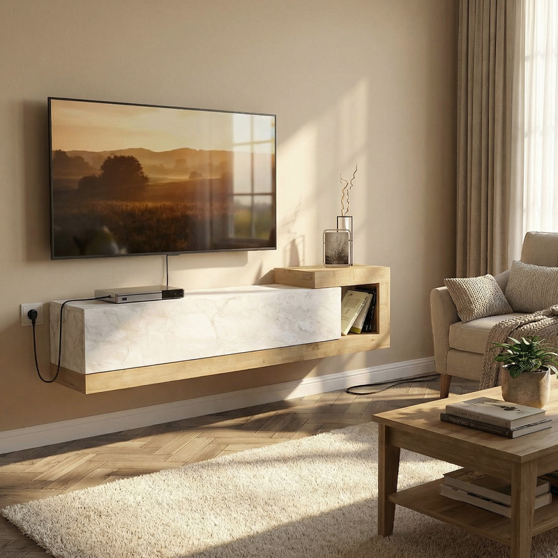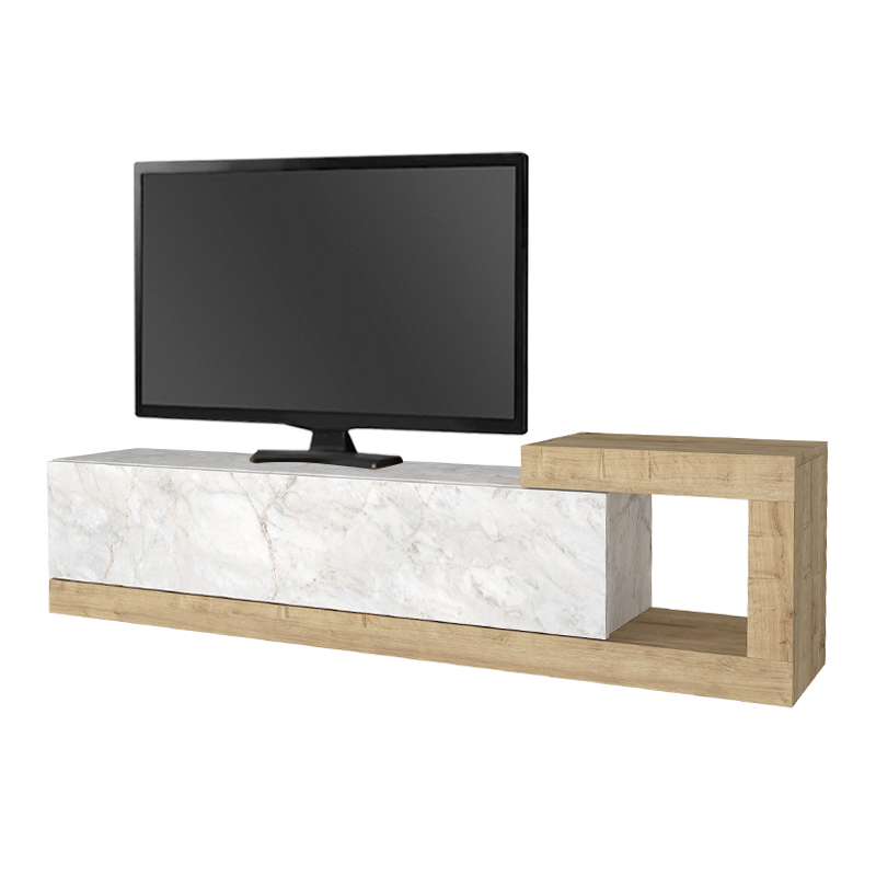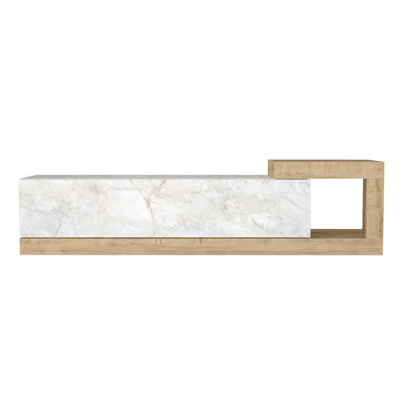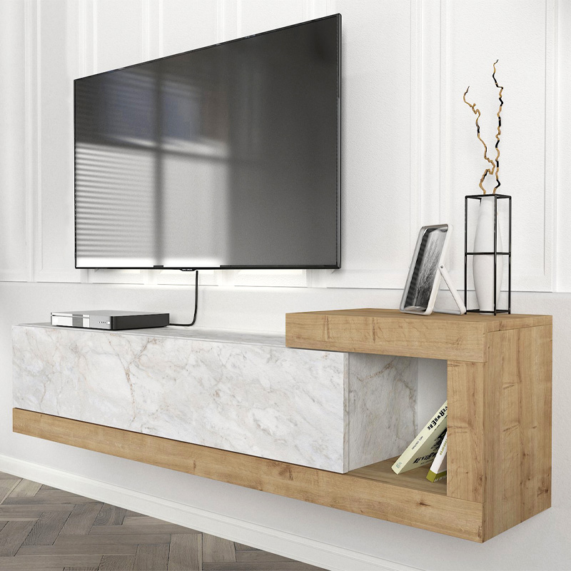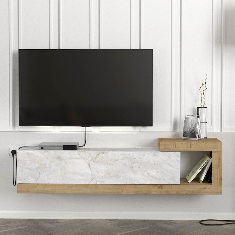 Έπιπλο τηλεόρασης επιτοίχιο Volare Megapap χρώμα λευκό εφέ μαρμάρου – sapphire oak 150×29,6×38,6εκ.