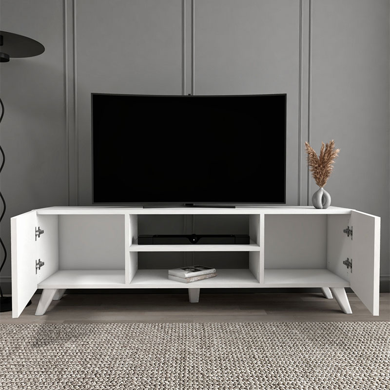 Έπιπλο τηλεόρασης Evelyn Megapap από μελαμίνη χρώμα λευκό 140x35x46εκ.