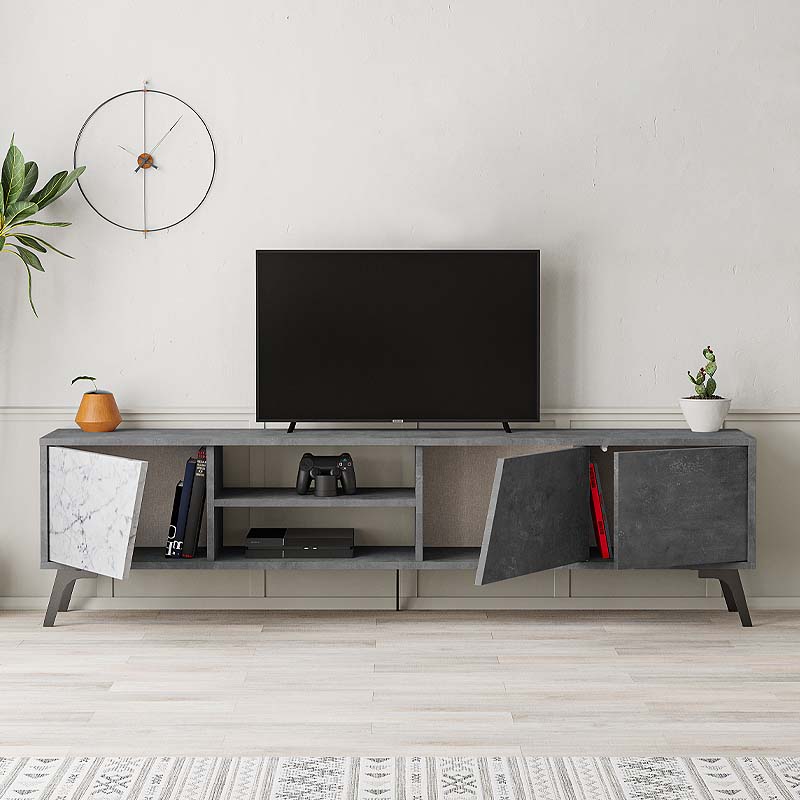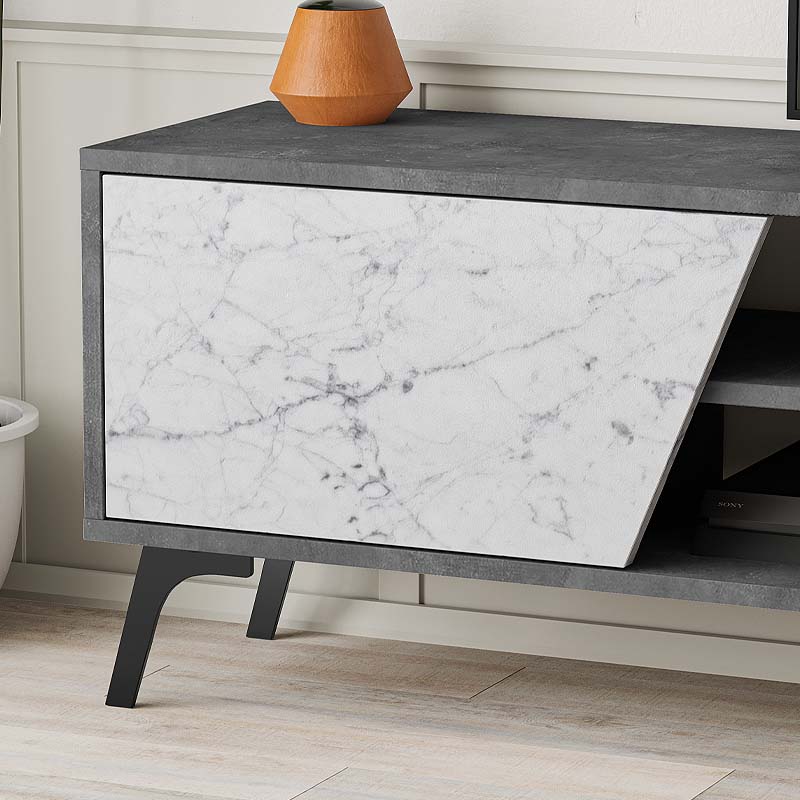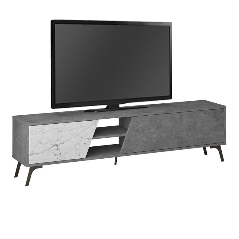 Έπιπλο τηλεόρασης Fiona Megapap από μελαμίνη χρώμα γκρι ρετρό – λευκό εφέ μαρμάρου 180×35,6×48εκ.