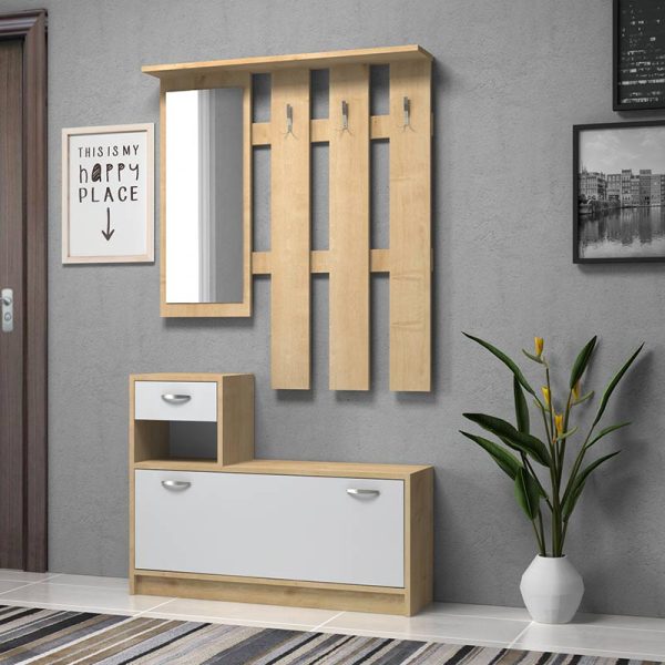 - Διαθέτει ένα δίφυλλο ανοιγόμενο ντουλάπι και δύο ράφια μήκους 76 εκ.