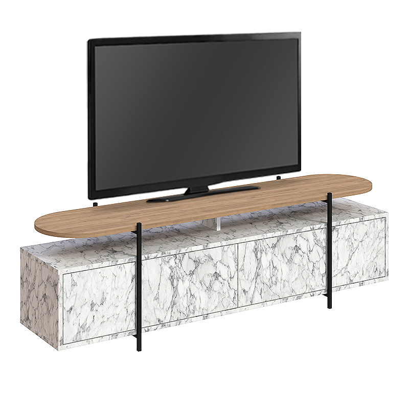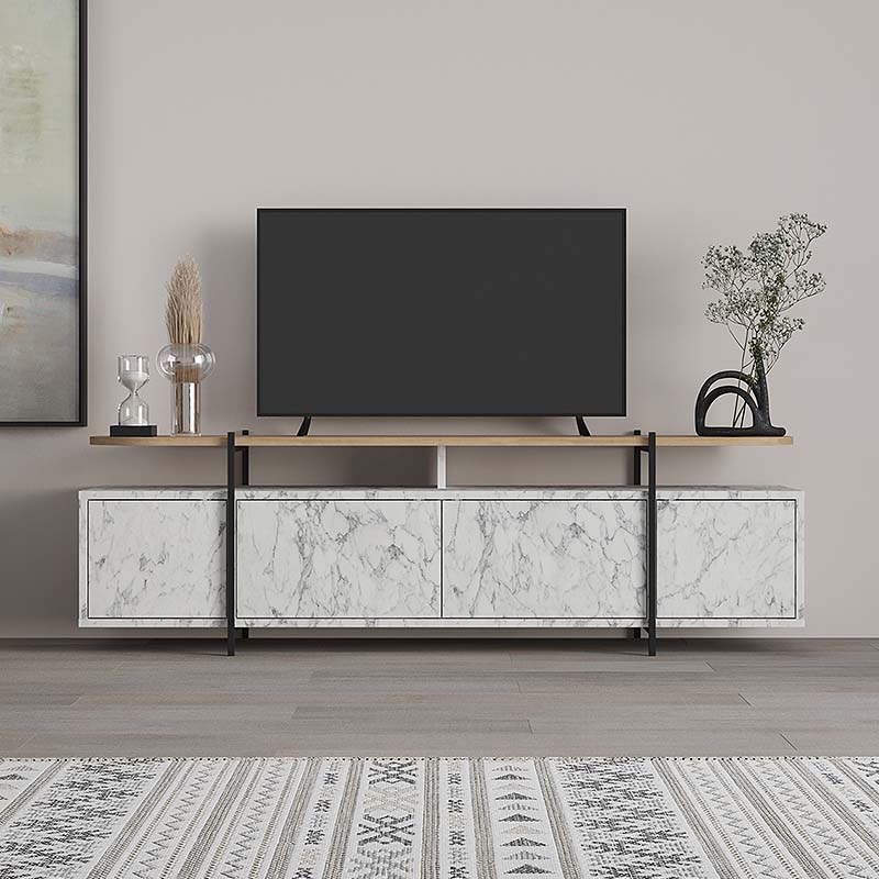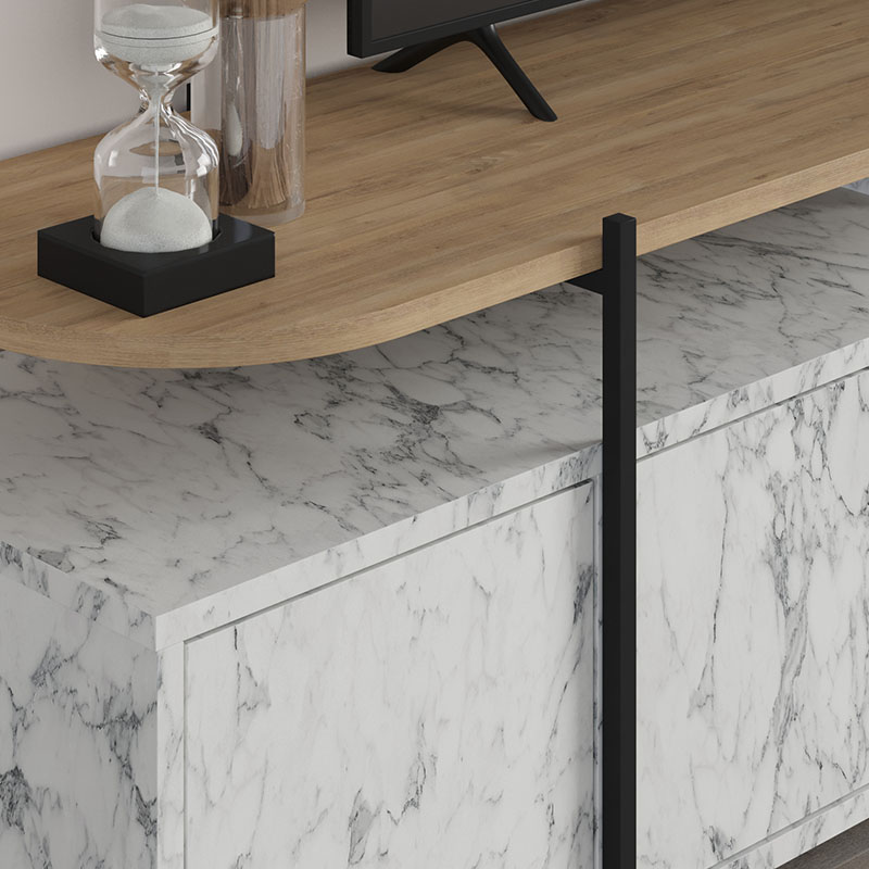 Έπιπλο τηλεόρασης Hanley Megapap από μελαμίνη χρώμα λευκό εφέ μαρμάρου 160×35,6×48εκ.
