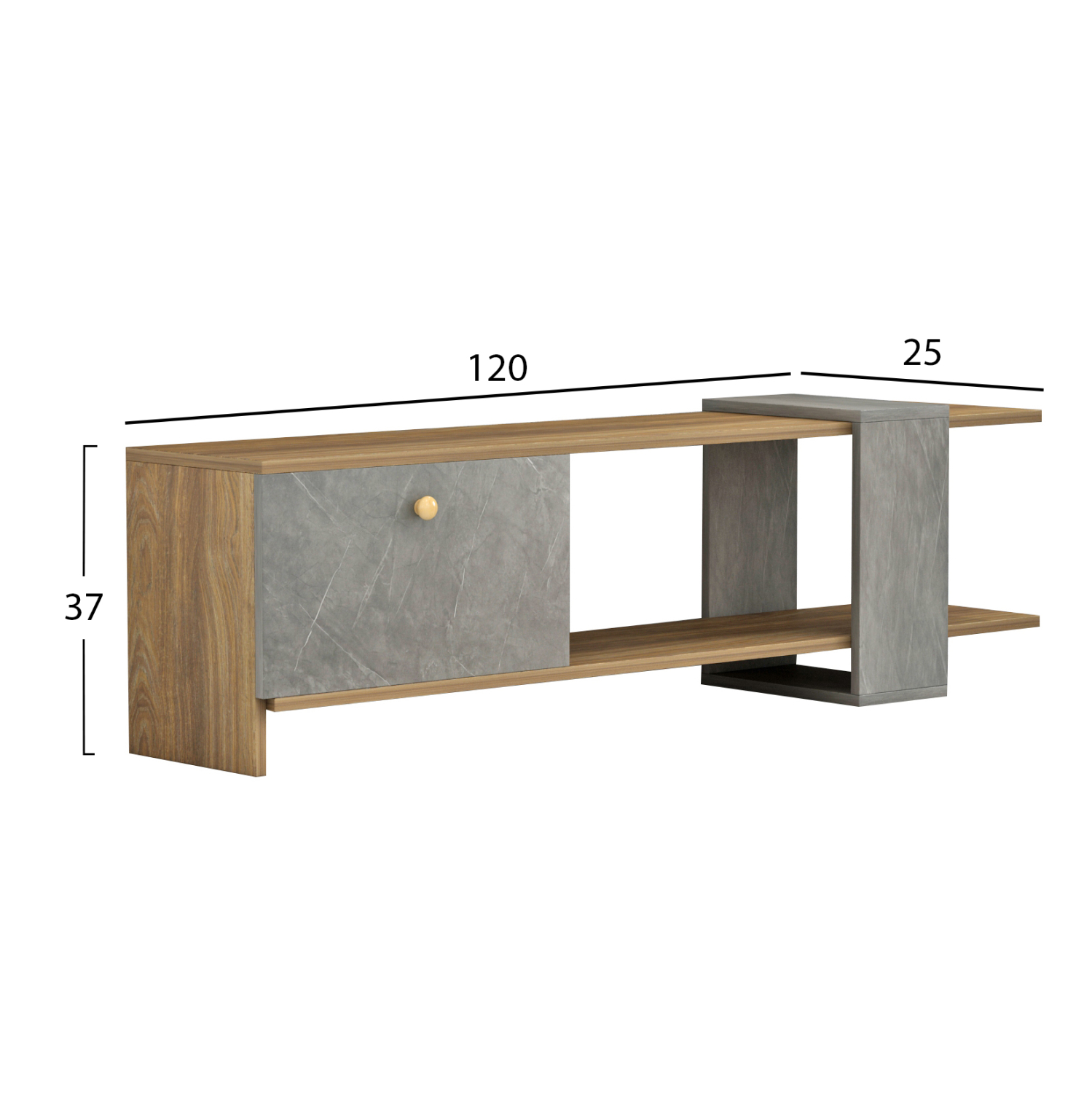 Το HENRIETTE είναι ένα μοντέρνο και λειτουργικό έπιπλο τηλεόρασης, που θα ομορφύνει το σαλόνι σας! Απευθύνεται σε όσους δεν έχουν μεγάλο χώρο μιας και δεν έχει ιδιαίτερα μεγάλες διαστάσεις αλλά σίγουρα το design του θα τραβήξει τα βλέμματα. Κάτω από την κύρια επιφάνεια του επίπλου υπάρχει ένα ντουλάπι που ανοίγει προς τα κάτω, και όλο το υπόλοιπο είναι ανοιχτός χώρος αποθήκευσης. Πρόκειται για μια κομψή και λιτή πρόταση για το σαλόνι σας σε διχρωμία ΦΥΣΙΚΟΥ ξύλου και γκριζωπής όψης πέτρας!