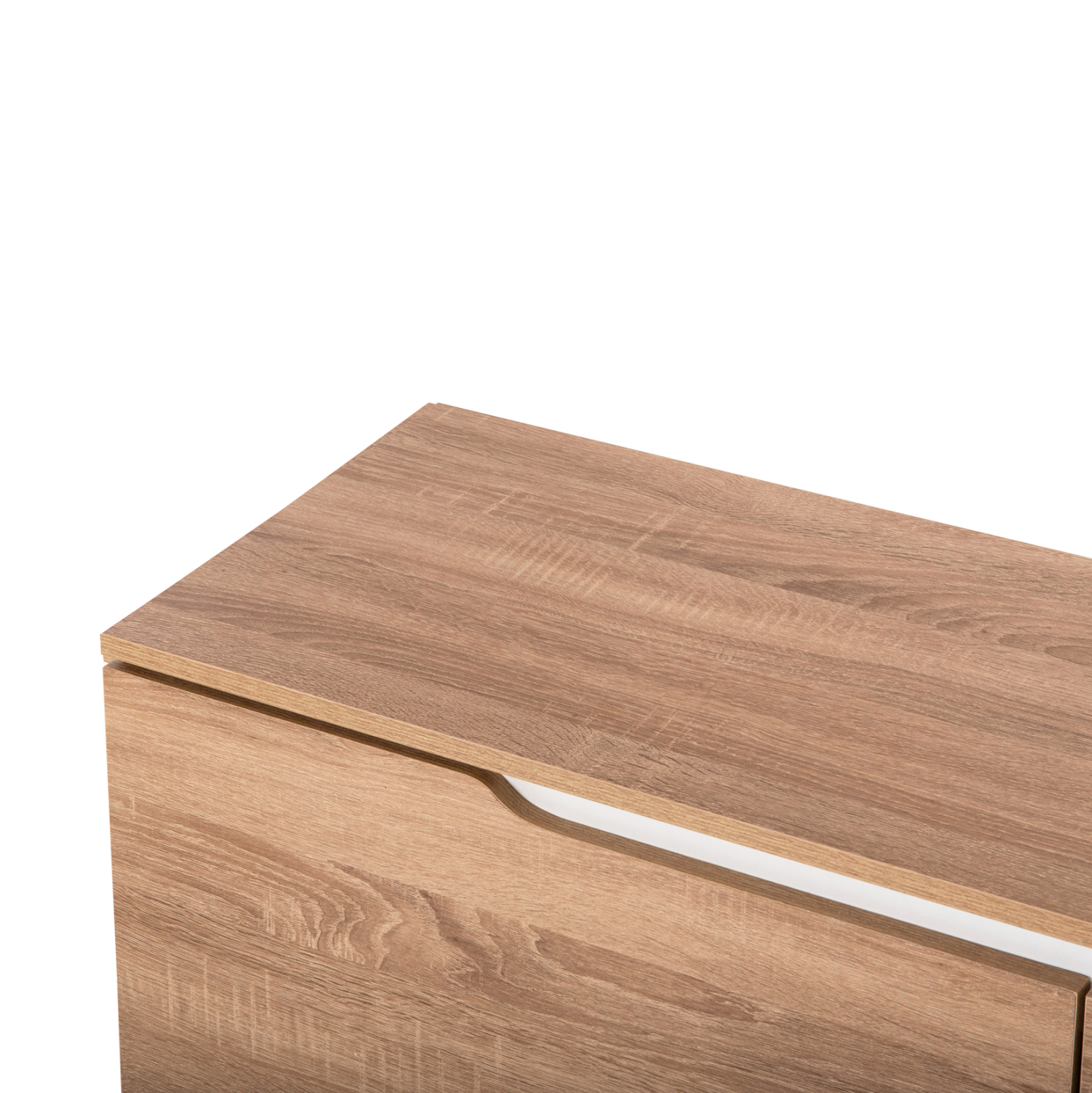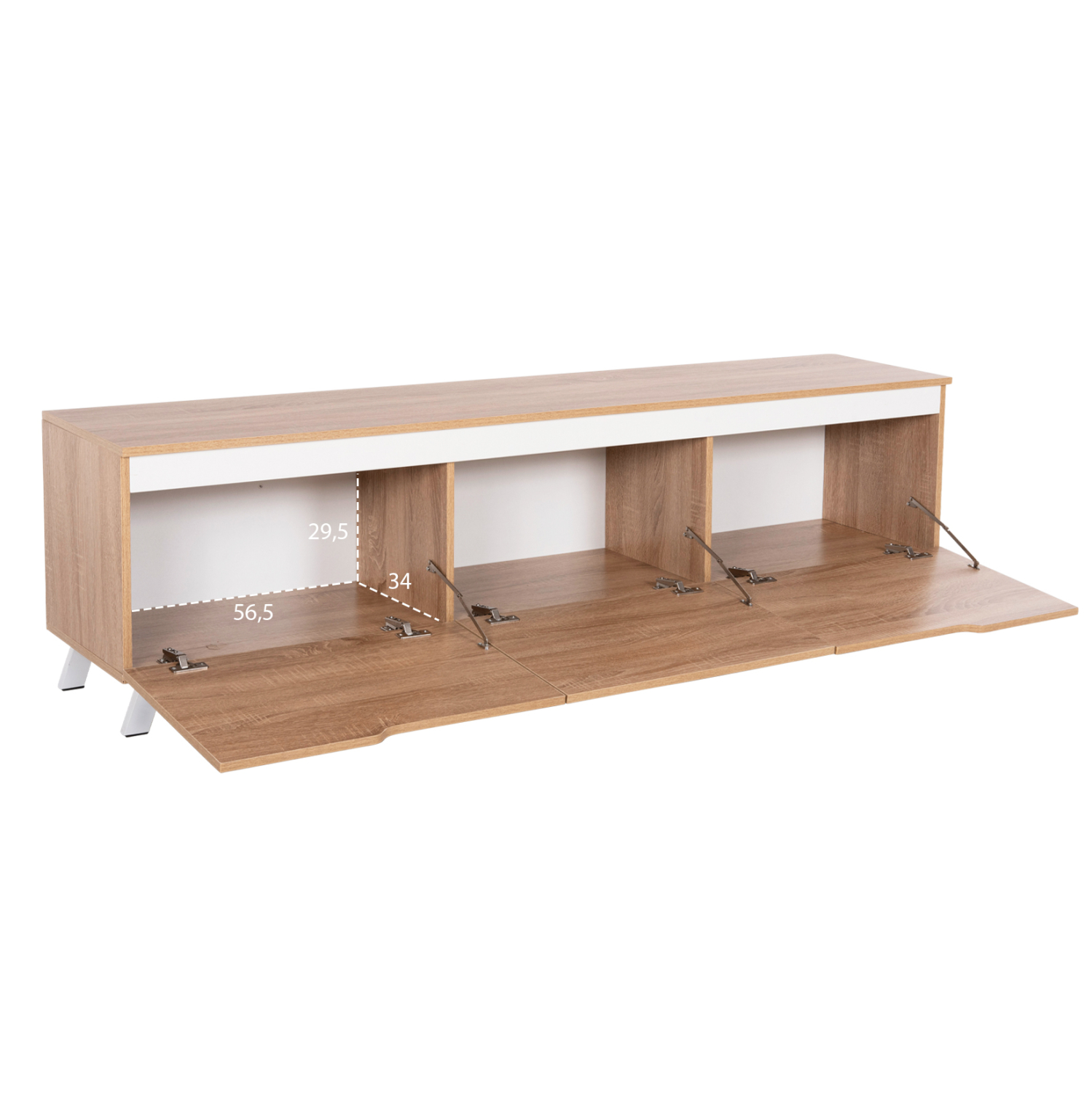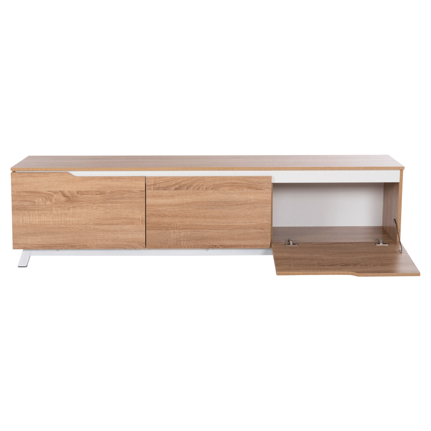 Το KIMIA είναι ένα μοντέρνο και λειτουργικό έπιπλο τηλεόρασης, που θα ομορφύνει το σαλόνι σας! Είναι μακρύ και διαθέτει 3 ντουλάπια. Τα πόδια ακολουθούν και αυτά την αισθητική γραμμή της υπόλοιπης κατασκευής. Το έπιπλο έρχεται σε μια πανέμορφη διχρωμία SONAMA με εμφανή τα «νερά» του ξύλου, και ΛΕΥΚΟ κυρίως στα πόδια, και οι διαστάσεις του είναι κατάλληλες για όλες τις τηλεοράσεις εάν θέλετε η τηλεόρασή σας να στηρίζεται σε βάση και όχι στον τοίχο. Πρόκειται για μια λιτή, κομψή και ολοκληρωμένη πρόταση για το σαλόνι σας!