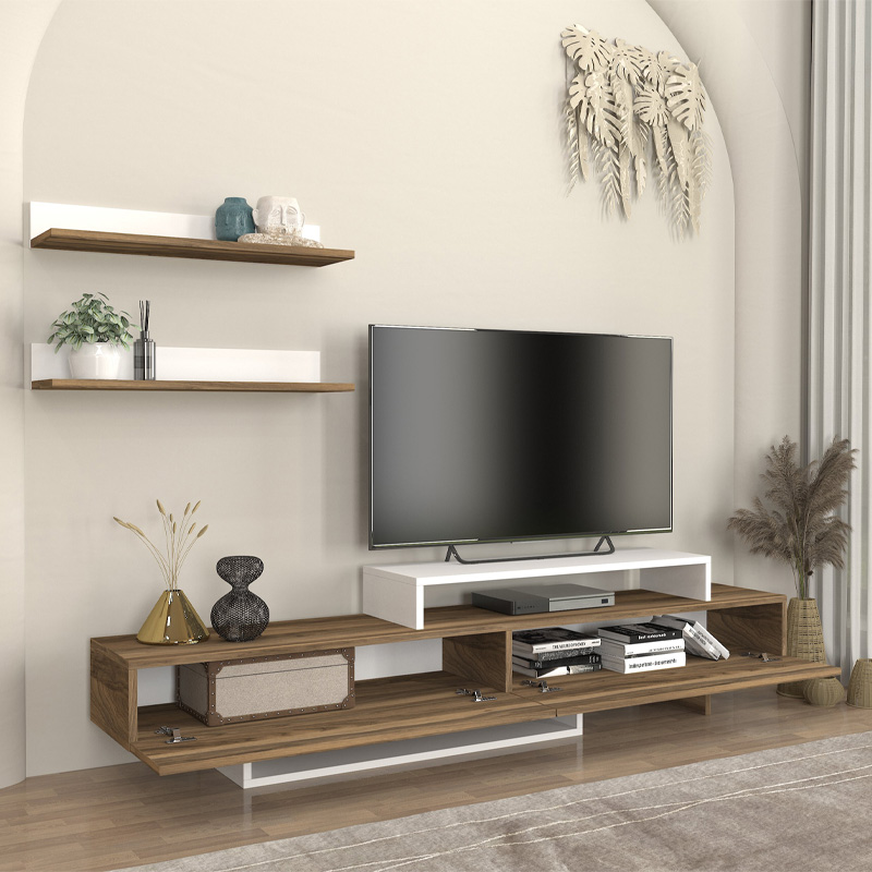 Έπιπλο τηλεόρασης Nirvana Megapap από μελαμίνη χρώμα καρυδί – λευκό 180×31,3×41,7εκ.