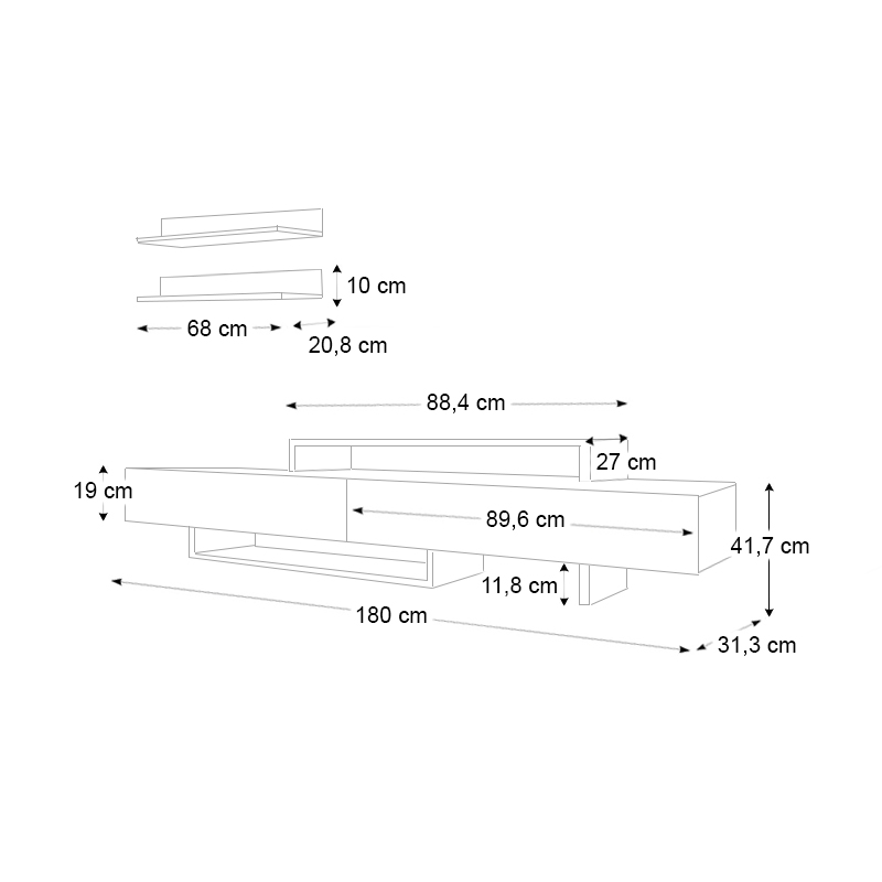 - Διαστάσεις ραφιέρας: Μήκος 68 x Βάθος 20 x Ύψος 10 εκ.
