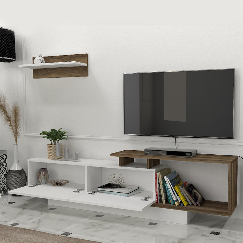 Έπιπλο τηλεόρασης Novara Megapap χρώμα λευκό – καρυδί 180×29,6×45εκ.