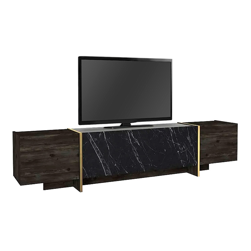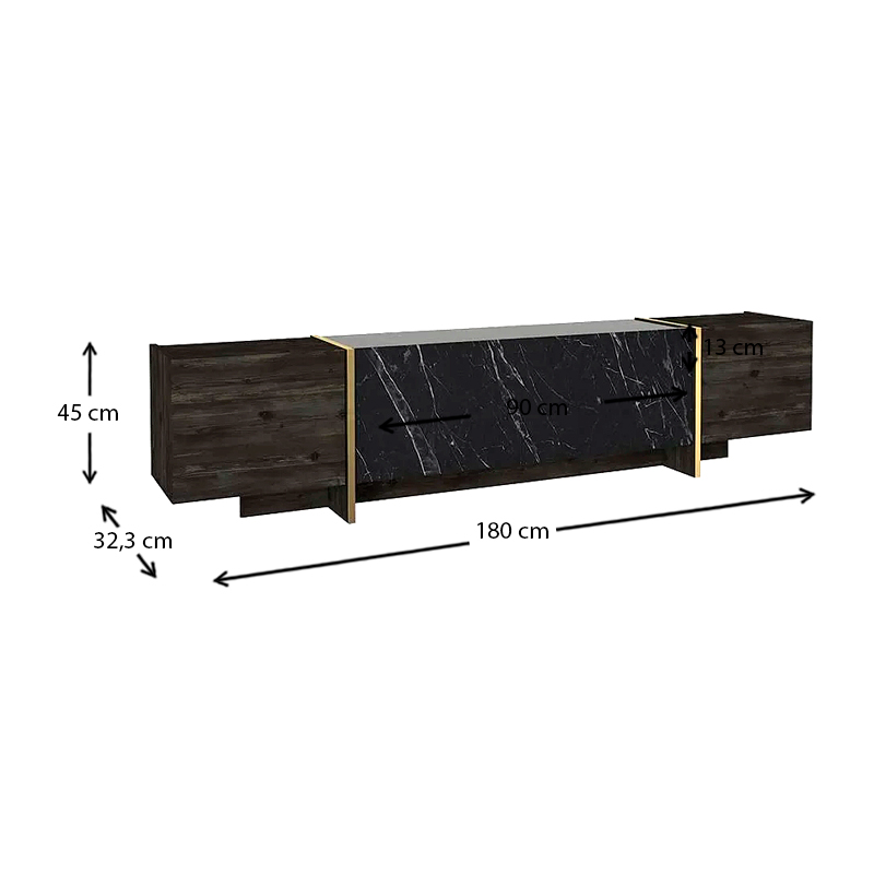 Έπιπλο τηλεόρασης Veyron Megapap από μελαμίνη χρώμα μαύρο rebab – μαύρο εφέ μαρμάρου 180×32,3×45εκ.