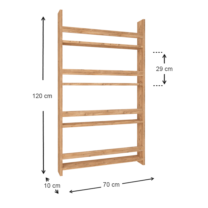 Επιτοίχια βιβλιοθήκη – ραφιέρα Montessori Megapap από μελαμίνη χρώμα pine oak 70x10x120εκ.