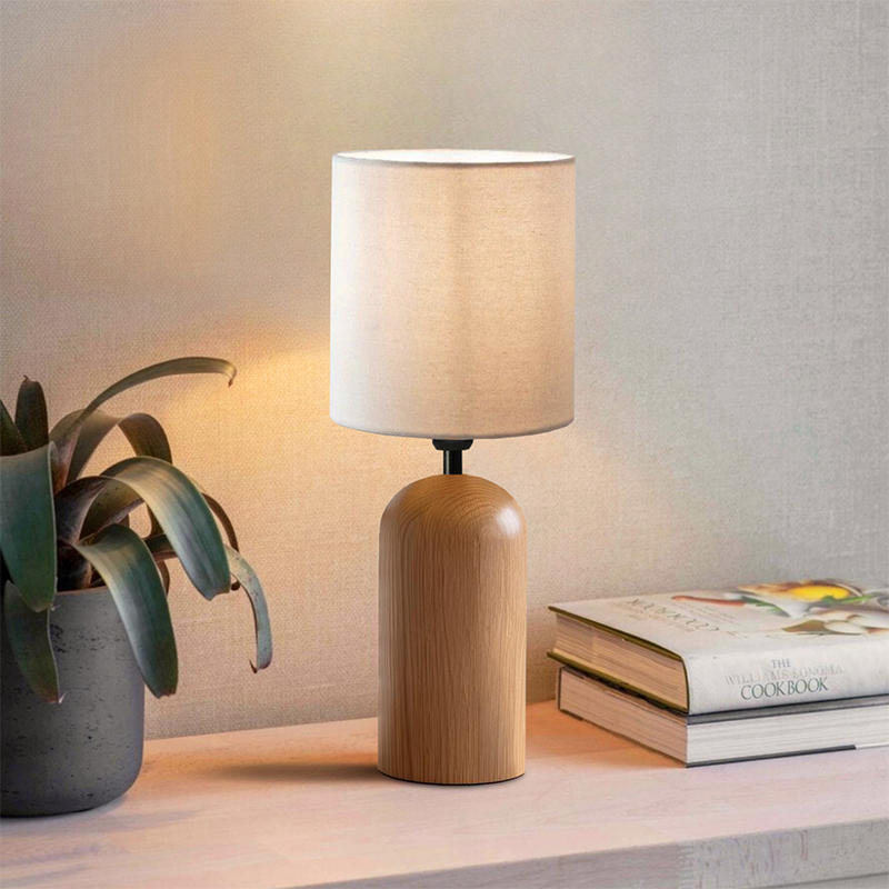 Φωτιστικό επιτραπέζιο Cora Megapap E14 ξύλινο – ύφασμα Pvc χρώμα φυσικό – κρεμ Ø15×35εκ.