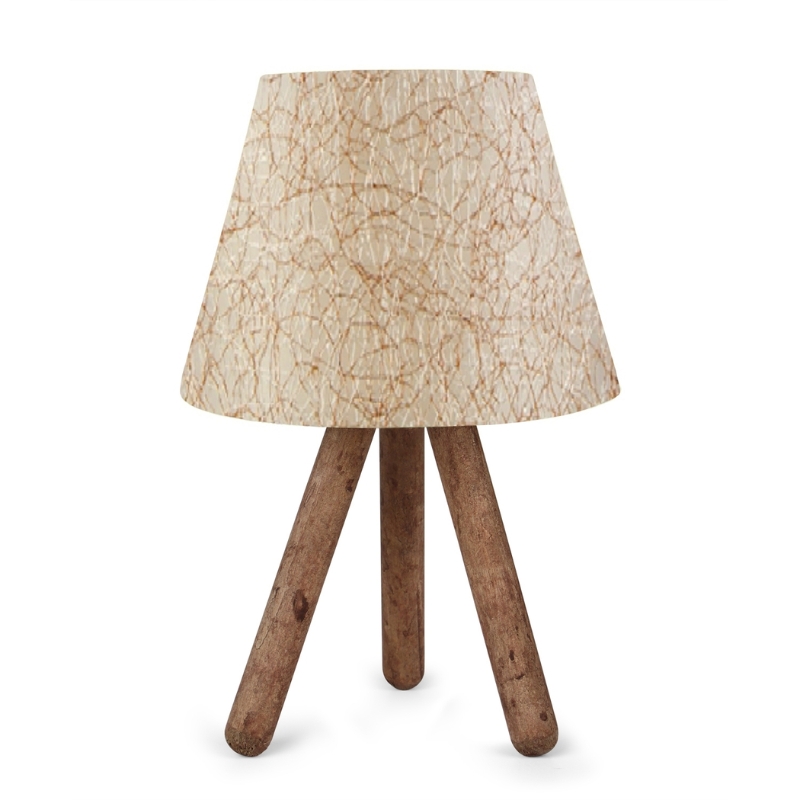 Φωτιστικό επιτραπέζιο Lander Megapap E27 ύφασμα Pvc – ξύλο χρώμα μπεζ χρυσό – καφέ 22x17x33εκ.