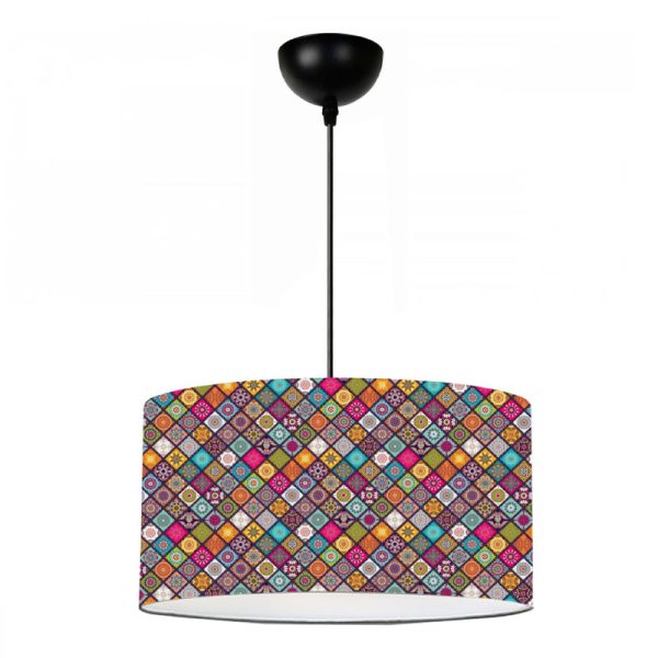 Φωτιστικό οροφής Alamea Megapap E27 υφασμάτινο μονόφωτο πολύχρωμο floral Φ38×70εκ.