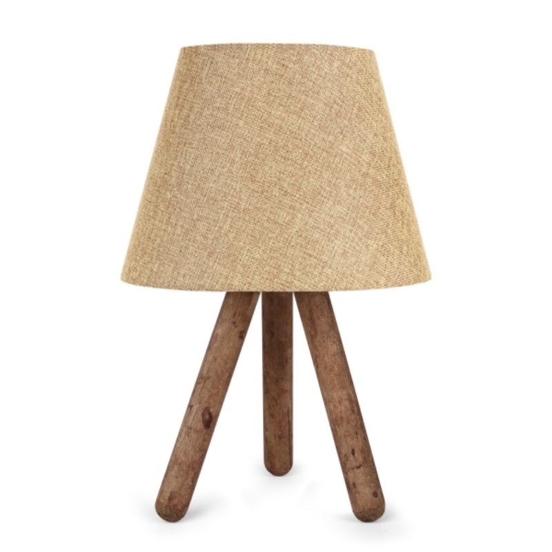 Φωτιστικό επιτραπέζιο Lander Megapap E27 ύφασμα Pvc – ξύλο χρώμα μπεζ – καφέ 22x17x33εκ.