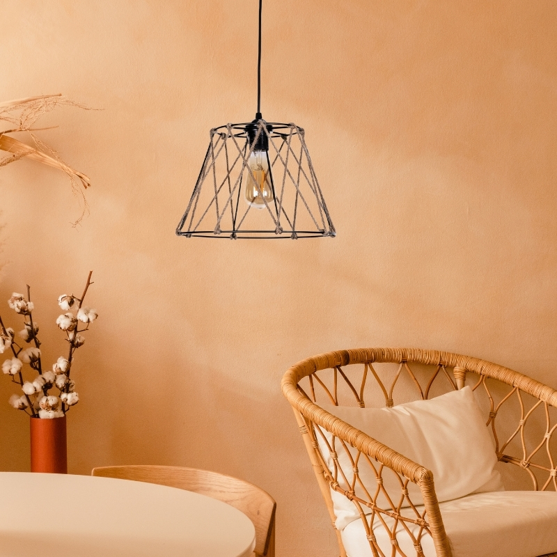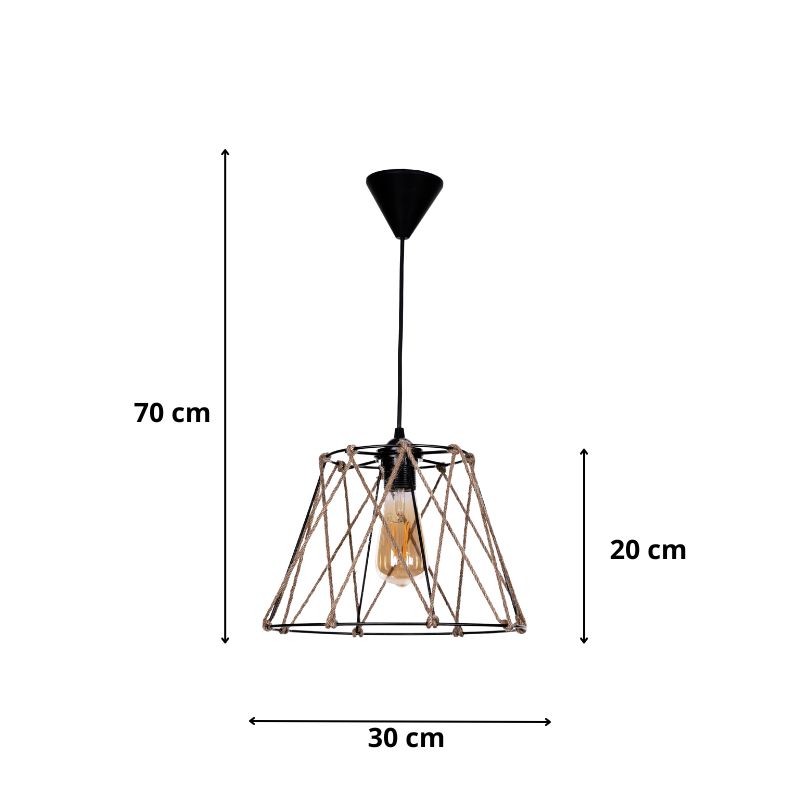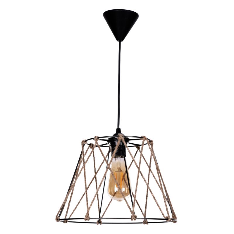 Φωτιστικό οροφής Andro Megapap E27 μεταλλικό – σχοινί μονόφωτο χρώμα μαύρο – φυσικό Ø30×70εκ.