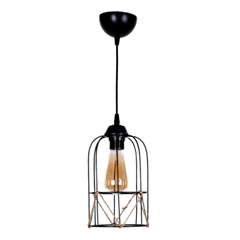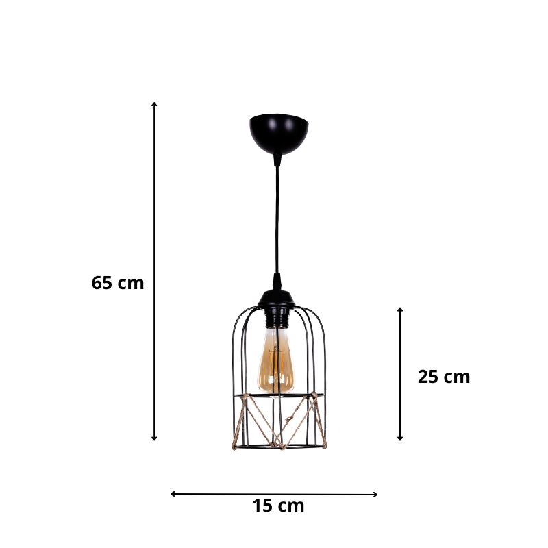 Φωτιστικό οροφής Argon Megapap E27 μεταλλικό – σχοινί μονόφωτο χρώμα μαύρο Ø15×65εκ.