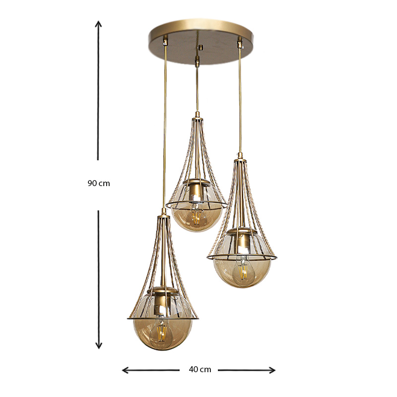 Φωτιστικό οροφής Chavi Megapap E27 μεταλλικό τρίφωτο χρωμα χρυσό 40x40x90εκ.