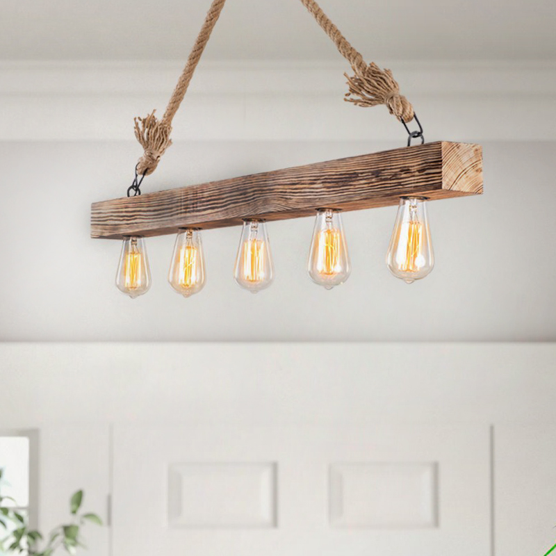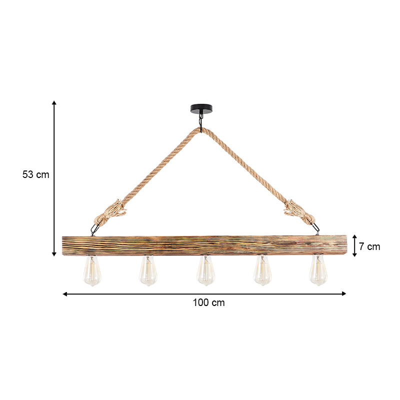 Φωτιστικό οροφής Erebos Megapap E27 ξύλο – σχοινί πεντάφωτο χρώμα φυσικό 100x7x53εκ.