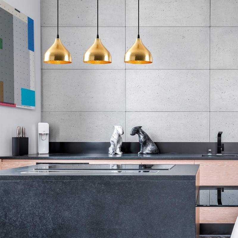 Φωτιστικό οροφής Kem Megapap E27 μεταλλικό μονόφωτο χρώμα χρυσό Φ9×124εκ.