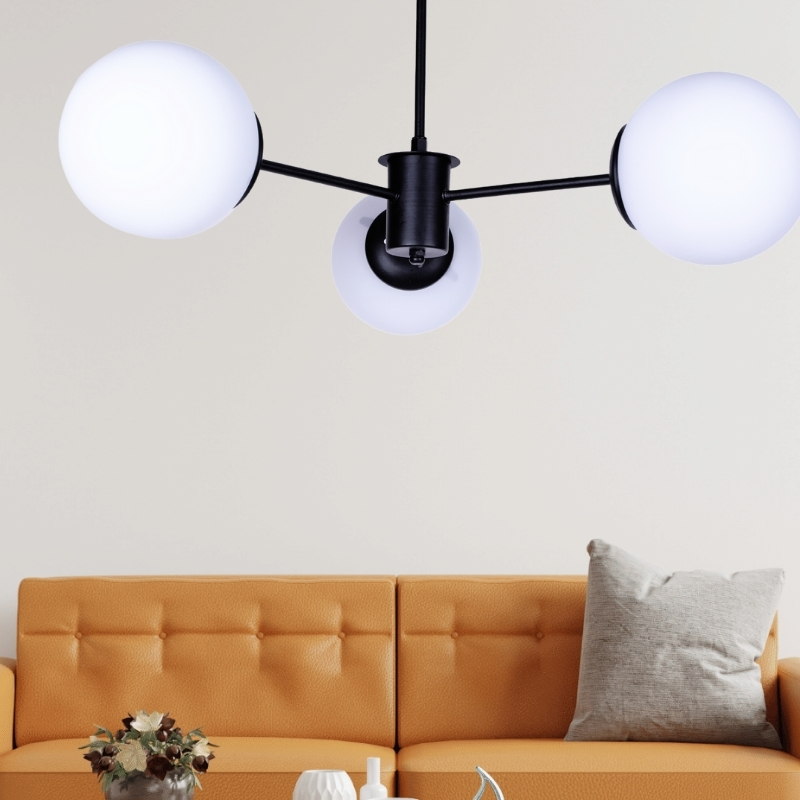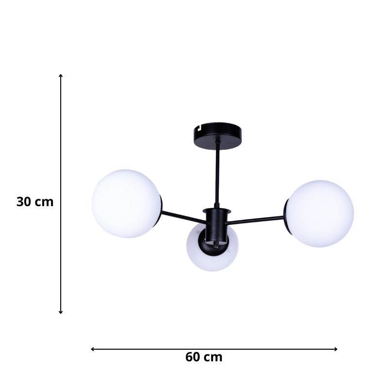 Φωτιστικό οροφής Fune Megapap E27 μεταλλικό – γυάλινο τρίφωτο χρώμα μαύρο – λευκό Ø60×30εκ.