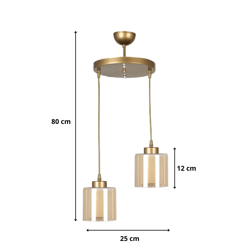 Φωτιστικό οροφής Kenedy Megapap E27 μεταλλικό – γυάλινο δίφωτο χρώμα χρυσό Ø25×80εκ.