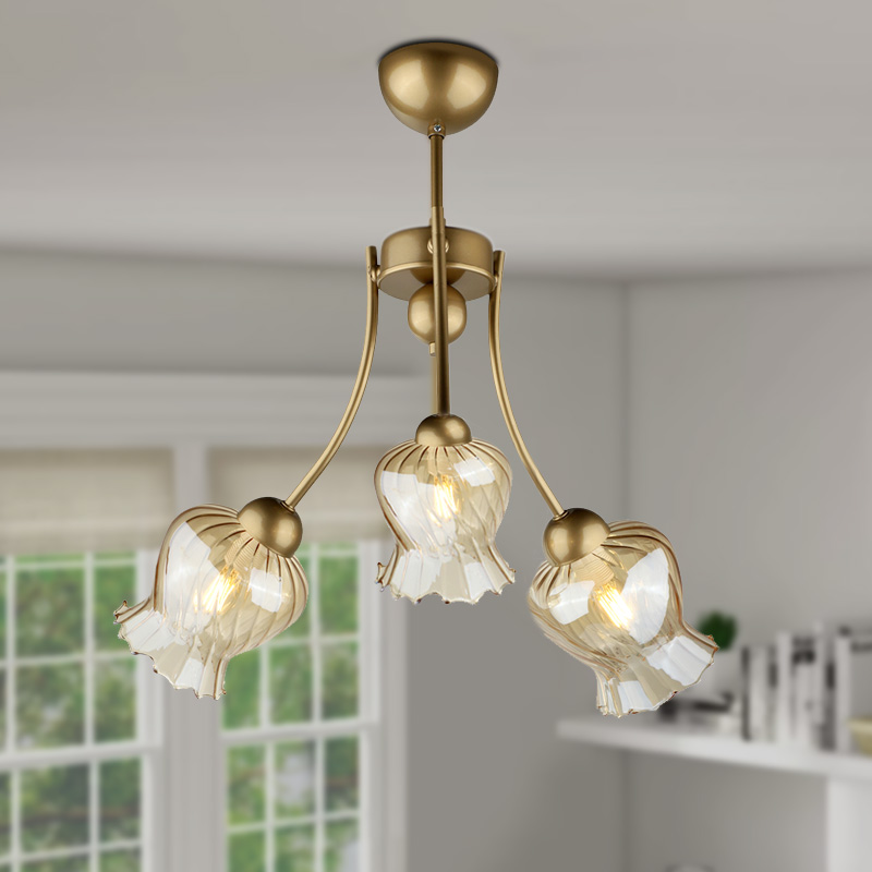 Φωτιστικό οροφής Maxidex Megapap Ε27 μεταλλικό – γυάλινο πεντάφωτο χρώμα χρυσό Ø80×50εκ.