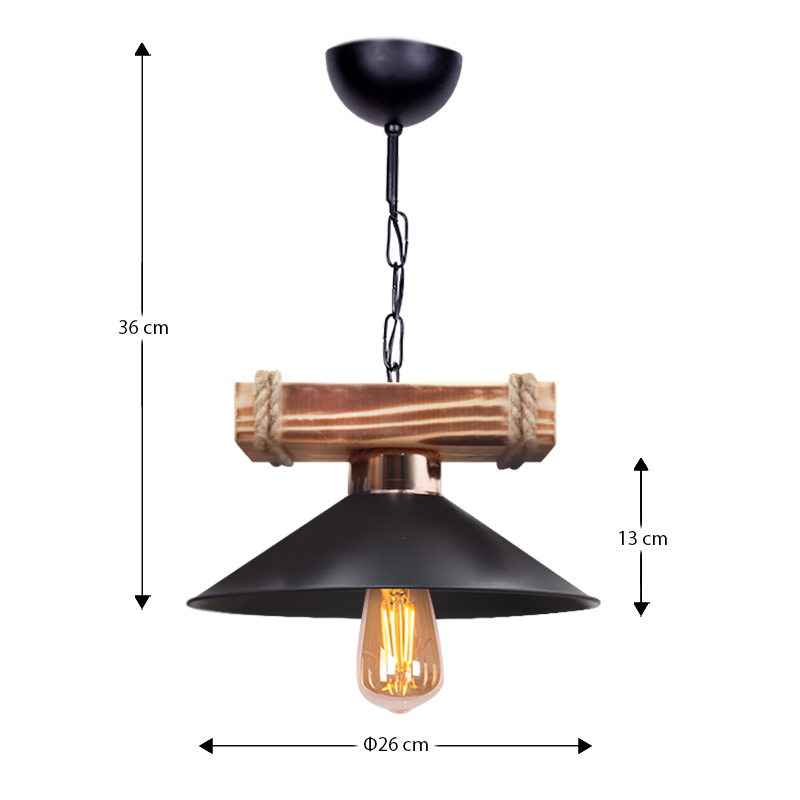 Φωτιστικό οροφής Melio Megapap E27 ξύλινο – πλαστικό μονόφωτο χρώμα μαύρο Ø26×36εκ.
