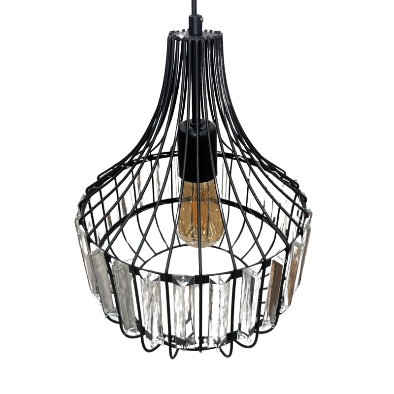 Φωτιστικό οροφής Merlin Megapap E27 μεταλλικό – γυάλινο μονόφωτο χρώμα μαύρο Ø28×80εκ.