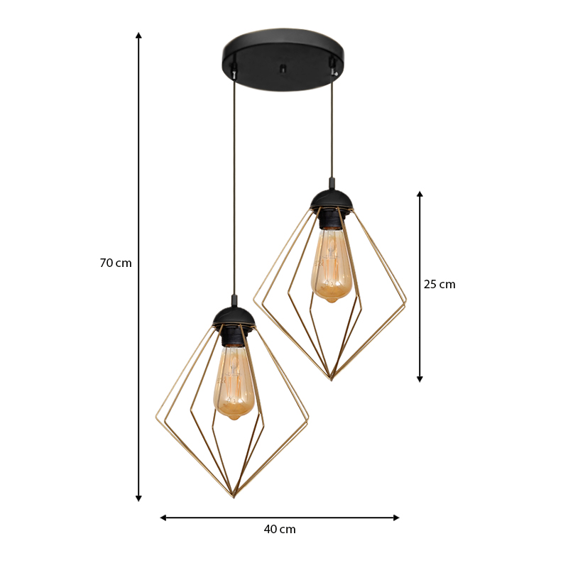 Φωτιστικό οροφής Nura Megapap E27 μεταλλικό δίφωτο χρώμα χρυσό 40x40x70εκ.