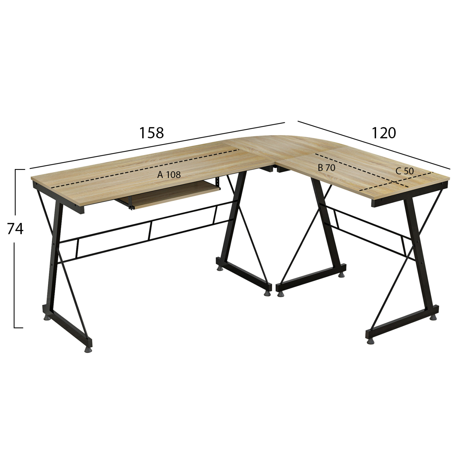 Γραφείο γωνία με κομψό και λιτό σχεδιασμό, κατασκευασμένο από ανθεκτική μελαμίνη γωνία σε απόχρωση sonama με μεταλλικό μαύρο σκελετό.
