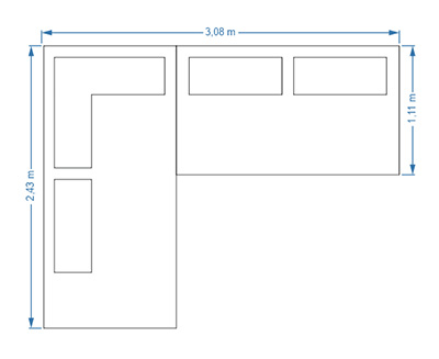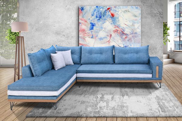 Γωνιακός καναπές σε μοντέρνο ύφος. Με ενσωματωμένα τα μαξιλάρια καθίσματος στη βάση του καναπέ και μετακινούμενες πλάτες με βαρίδιο, οι οποίες μπορούν να τοποθετηθούν σε οποιοδήποτε μέρος του καναπέ.