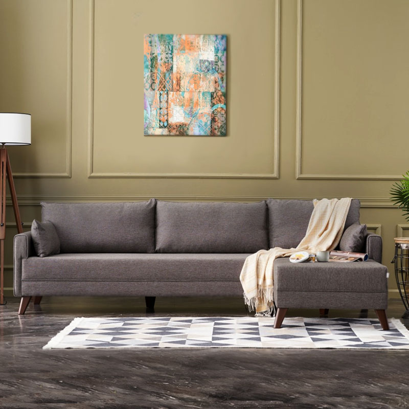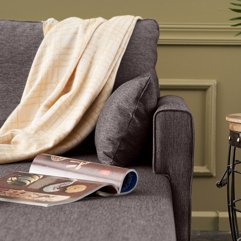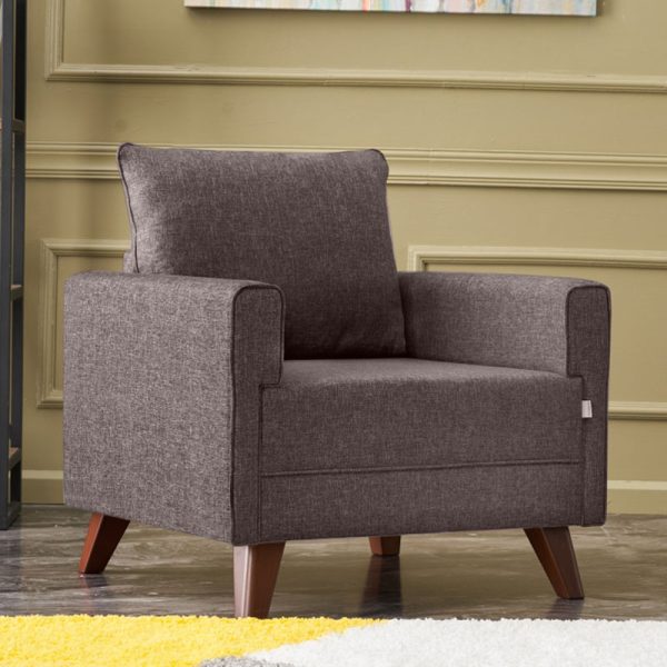 - Φέρει πόδια από πολυπροπυλένιο, ειδικά σχεδιασμένο για καναπέδες, με ξύλινη εμφάνιση σε καρυδί χρώμα.