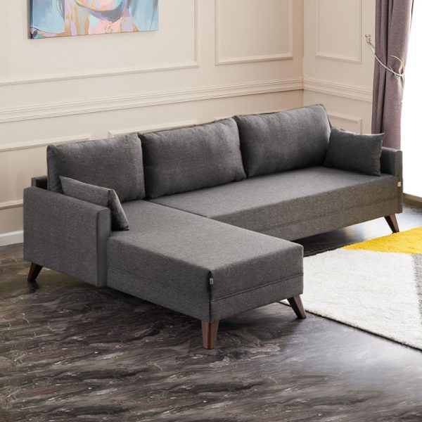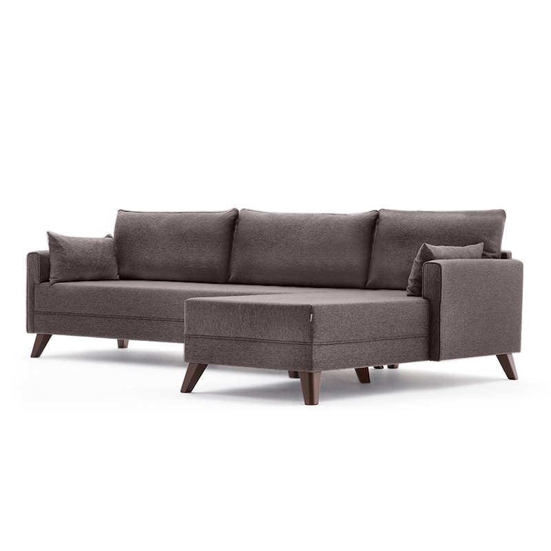 Γωνιακός καναπές Bella Megapap δεξιά γωνία υφασμάτινος χρώμα καφέ 275x165x85εκ.