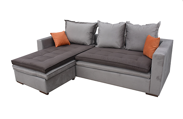 Γωνιακός καναπές με δυνατότητα τοποθέτησης της γωνίας αριστερά ή δεξιά, εύκολα και γρήγορα, με μια απλή μετακίνηση του ταμπουρέ.