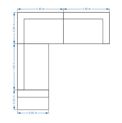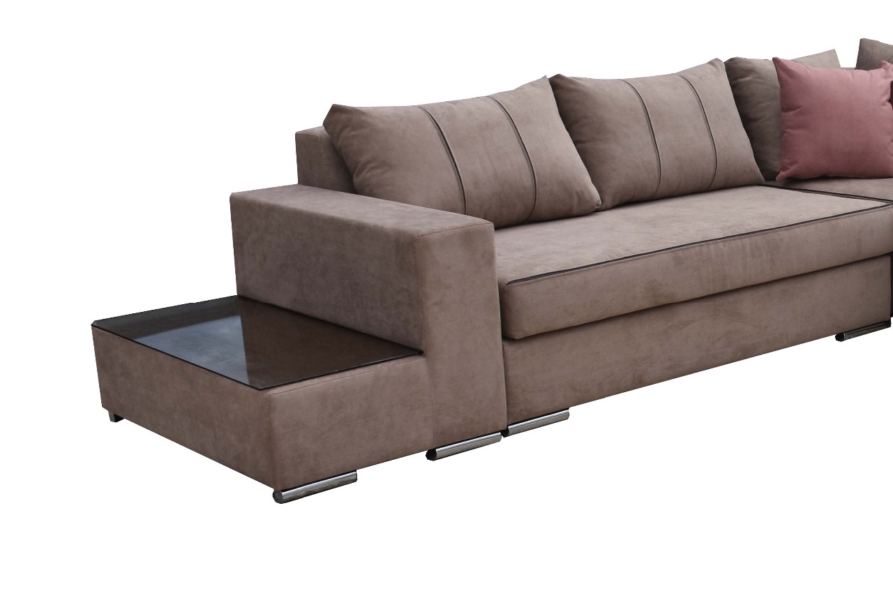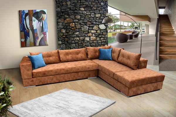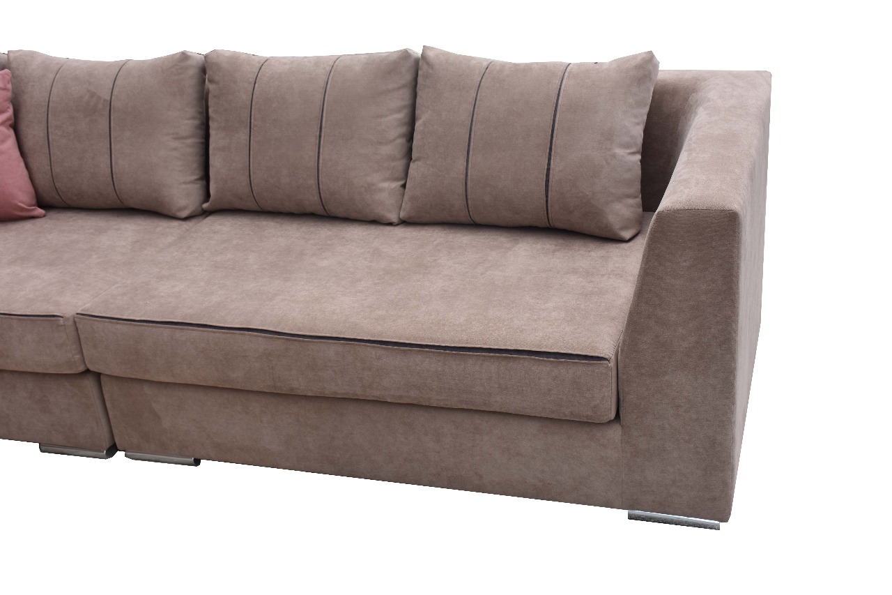 Σύστημα καναπέ αποτελούμενο από τέσσερα (4) τεμάχια, με δυνατότητα τοποθέτησης της γωνίας αριστερά ή δεξιά, εύκολα και γρήγορα, με μια απλή μετακίνηση των τεμαχίων. Μαξιλάρια με διακοσμητικές λεπτομέρειες με κρυφό ρέλι.